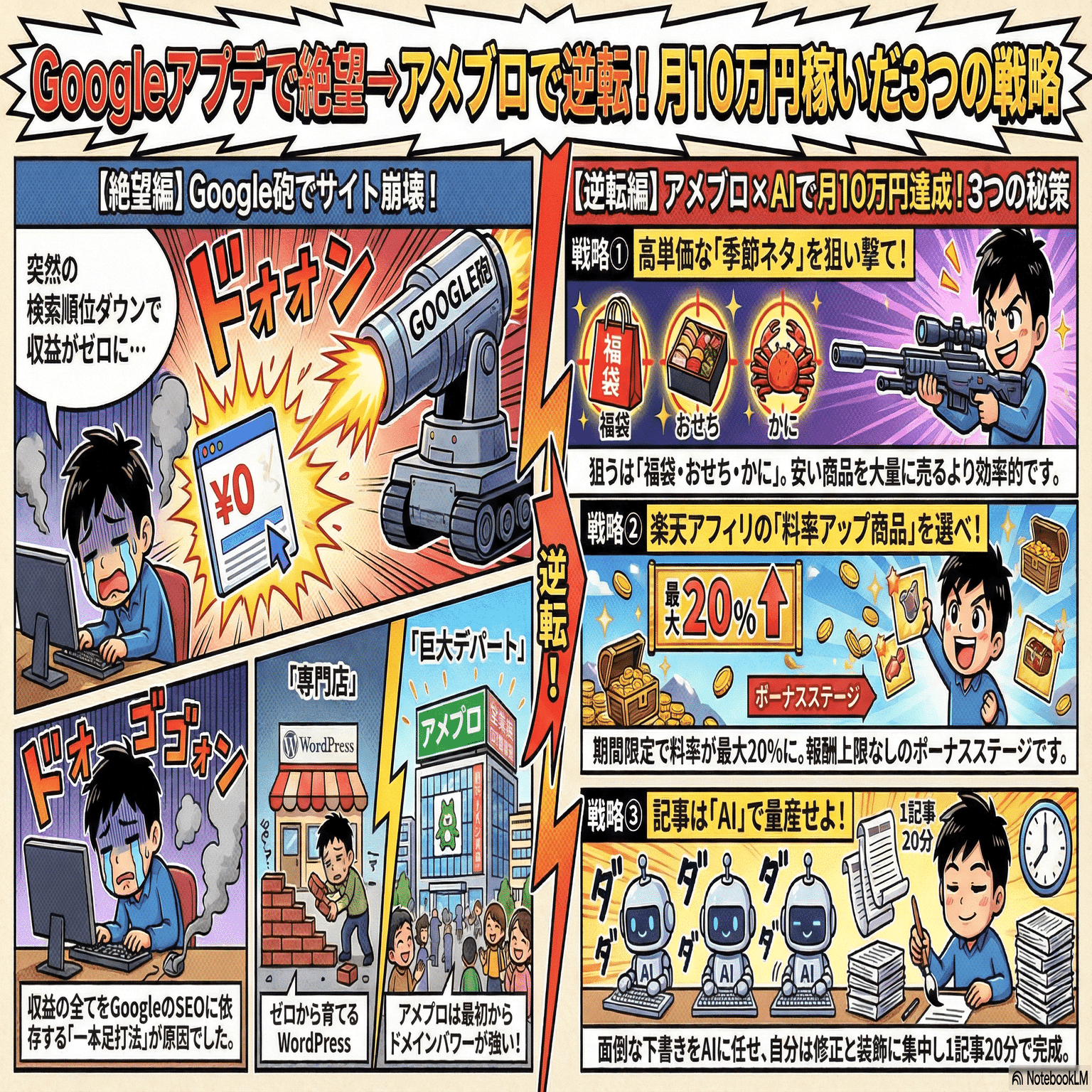 この記事は、Googleアプデで被弾し、一度は挫折しかけた私が、どのようにしてアメブロで復活し、新たな収益源を作ったのか。 その「逆転の戦略」と「具体的な稼ぎ方」をすべて記録したものです。